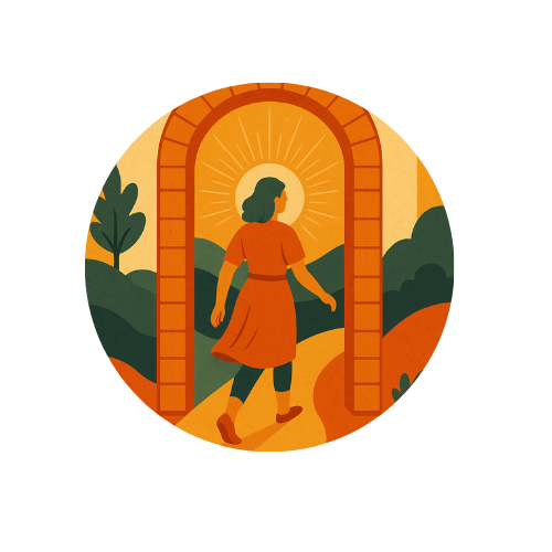 🟠 Je volgt een duidelijke structuur, gebaseerd op de eeuwenoude reis van de held(in) — The Hero’s Journey.