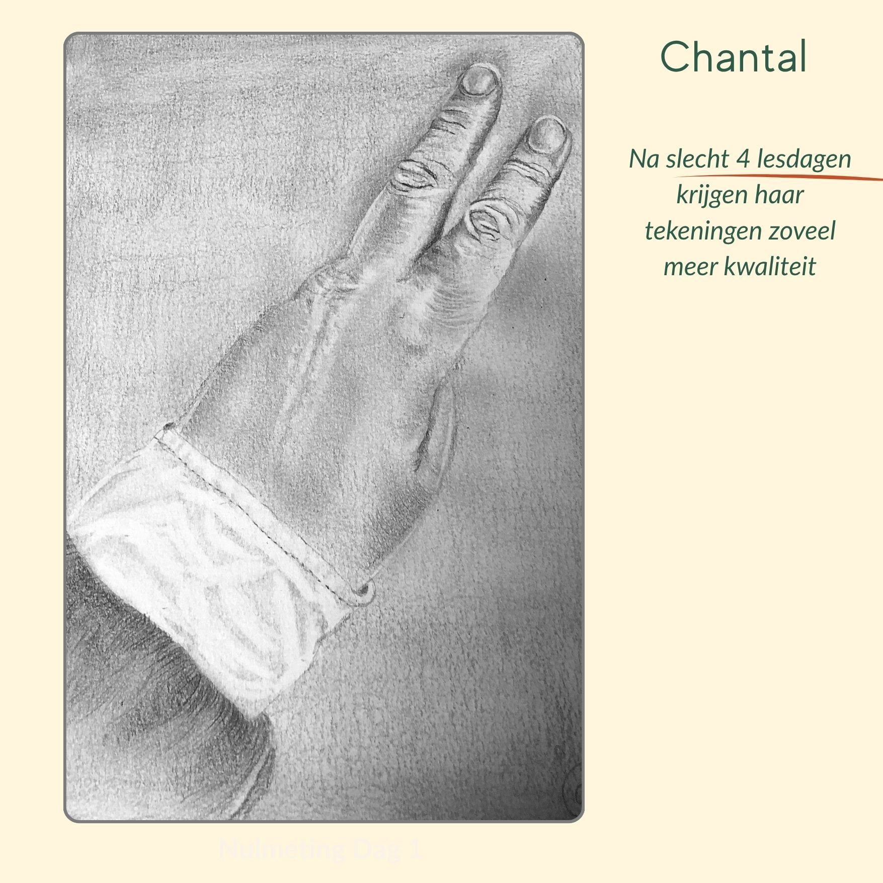 Chantal heeft in 4 dagen leren waarnemen met het rechterbrein. Ze ziet zoveel meer en kan dit nu tekenen.